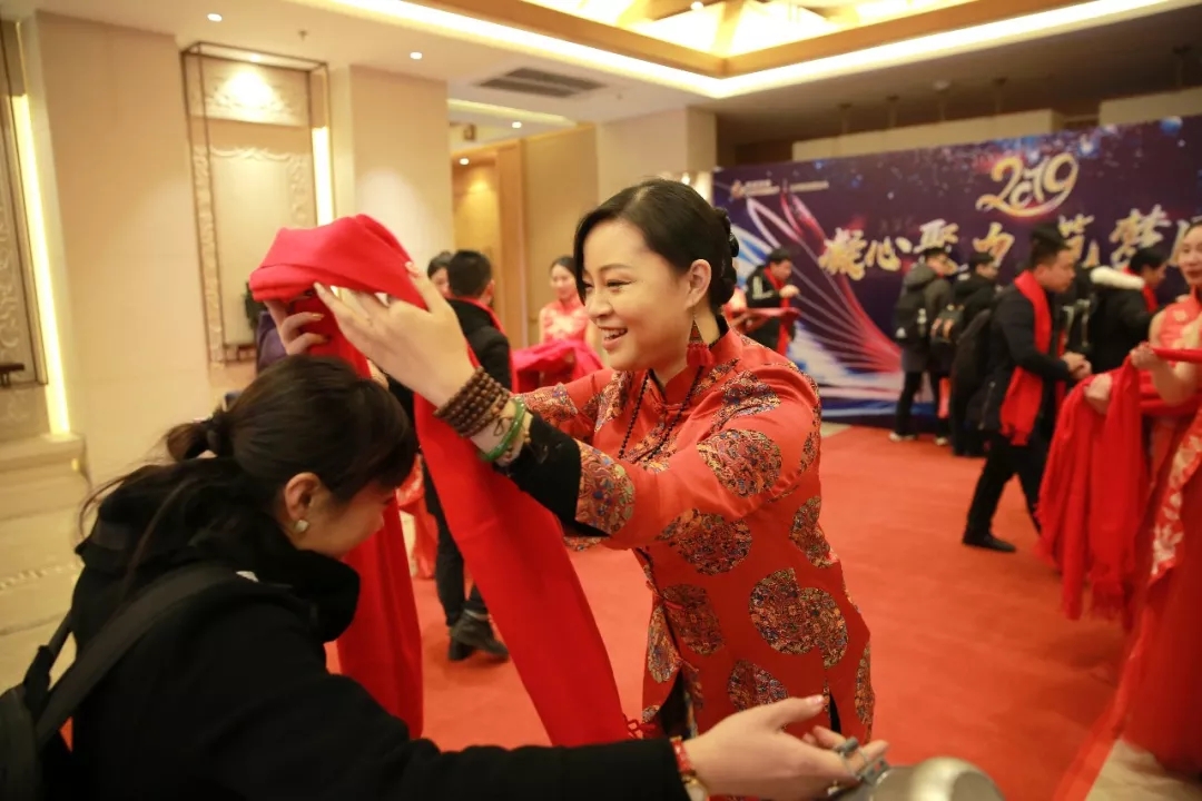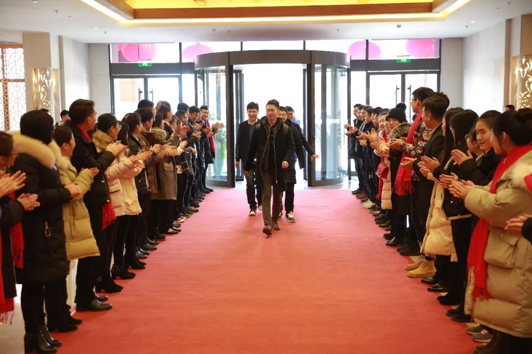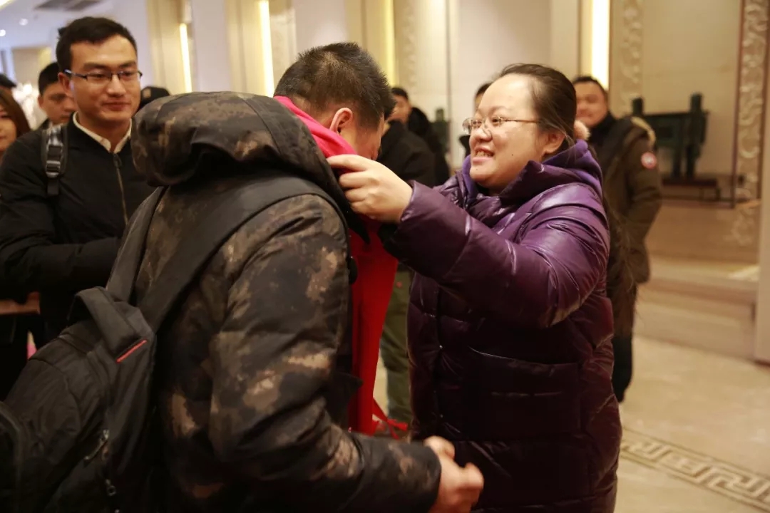 滿懷喜悅的心情,康姿百德的家人們踏上紅毯,緩緩走向會(huì)場入口。守候在會(huì)場入口的領(lǐng)導(dǎo)們,為大家?guī)显⒁庵凹楹眠\(yùn)”的紅圍巾,把最誠摯、最真情的祝福送給每位康姿百德家人。