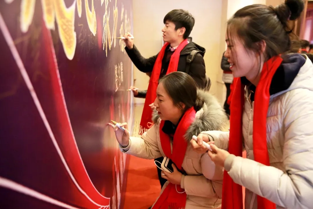 家人們在簽名墻前簽名