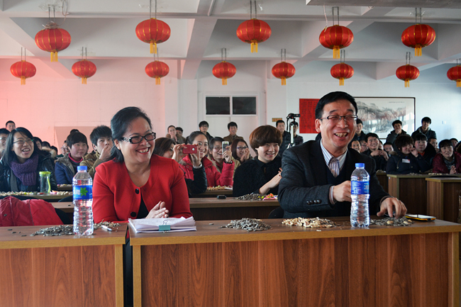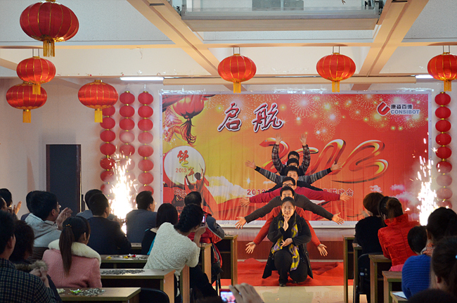 聯(lián)歡會(huì)在歌曲聯(lián)唱《歡天喜地拜大年》的歡快節(jié)奏中拉開(kāi)帷幕,公司各部門(mén)紛紛上臺(tái),《新年好》、《恭喜發(fā)財(cái)》、《正月里來(lái)正月正》、《小拜年》、《恭喜恭喜你》等經(jīng)典拜年歌曲再現(xiàn),別出心裁的出場(chǎng)方式讓人目不暇接。由市場(chǎng)部北京區(qū)表演的舞蹈《美觀不美觀》將演出推向了高潮,場(chǎng)下掌聲不斷,歡快、喜慶、熱烈的氣氛溢滿(mǎn)會(huì)場(chǎng),整個(gè)會(huì)場(chǎng)暖意融融,變成了歡樂(lè)的海洋。
