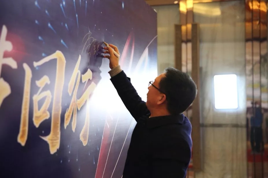 李銀祥董事長和其他幾位領(lǐng)導(dǎo)在會(huì)場(chǎng)入口