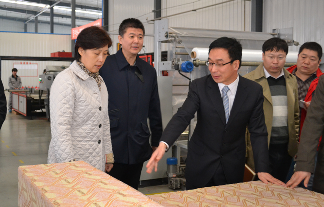 市委書(shū)記田向利(右三)參觀我公司世界第一條磁性寢具自動(dòng)化生產(chǎn)線