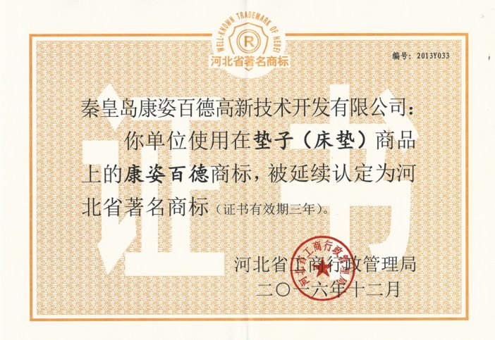 “河北省著名商標(biāo)”證書