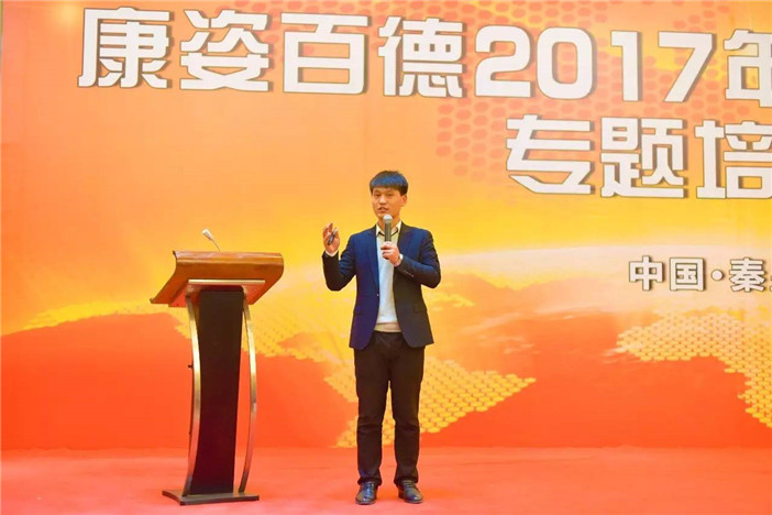 康姿百德銷(xiāo)售一公司銷(xiāo)售經(jīng)理張東旭為學(xué)員們授課
