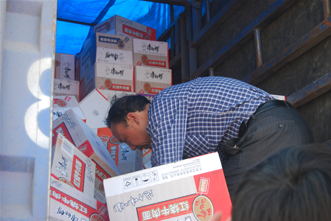 25日下午一點(diǎn),物資車(chē)到達(dá)山西古交。古交康姿百德總代理卞永芹,代表太原總代、長(zhǎng)治總店、長(zhǎng)治市區(qū)、長(zhǎng)治縣、長(zhǎng)鋼、武鄉(xiāng)、潞城、河南鄭州等地的代理商將愛(ài)心物資裝上貨車(chē)。 日夜兼程,馳援雅安 餓了,吃口面包,渴了,喝口涼水??底税俚戮葹?zāi)物資車(chē)隊(duì)日夜兼程,行程2360公里,歷時(shí)70多個(gè)小時(shí),一路加了7次油,于26日下午6時(shí)抵達(dá)成都——民政部中央救災(zāi)物資成都儲(chǔ)備庫(kù)。由于交通管制,車(chē)輛不能進(jìn)入蘆山縣,受儲(chǔ)備庫(kù)派遣,康姿百德救災(zāi)車(chē)隊(duì)將救災(zāi)物資送到雅安市天全縣抗震救災(zāi)指揮部。車(chē)隊(duì)到達(dá)天全縣已是27號(hào)早上7點(diǎn),運(yùn)送物資人員已疲憊不堪,但當(dāng)他們得知小河鄉(xiāng)急需棉被和方便面等生活必需品時(shí),立刻驅(qū)車(chē)把救災(zāi)物資送到小河鄉(xiāng)。
