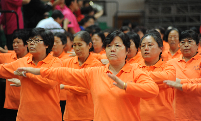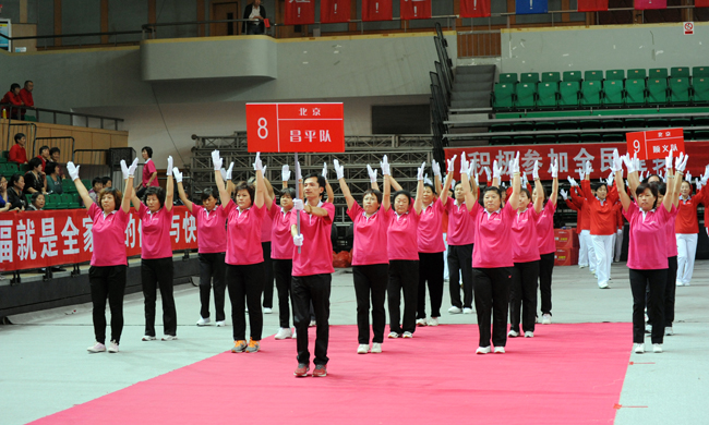 北京昌平隊 從選拔、備戰(zhàn)到今天的總決賽,一路走來,參賽隊員們的動作越來越熟練,越來越標準,團隊凝聚力越來越強。這些活力十足的中老年朋友并沒有滿足于越跳越熟練這一標準,不少參賽隊伍在原有健身操基礎上又添加了一些新的成分。充滿個性的隊名、色彩鮮艷的運動裝、揮舞的彩旗等創(chuàng)意,在總決賽的舞臺上給所有觀眾打造了一臺視覺盛宴,讓參賽節(jié)目更有看頭。賽場上,參賽隊員的展示非常到位,微笑始終掛在臉上,就連賽前的口號都是精心準備、反復推敲?;盍o限的她們感染了舞臺下的每一位觀眾,現(xiàn)場觀眾都在用自己最熱烈掌聲、最大的歡呼聲表達著對參賽選手的喜愛和尊重。 |