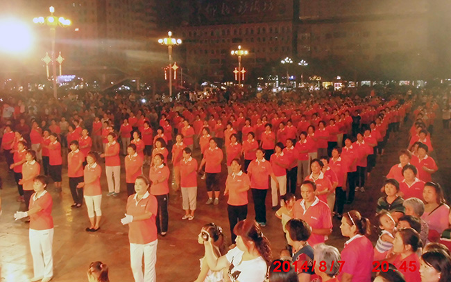 8月7日晚,河南新鄭市炎黃廣場(chǎng)上,廣大市民以各種方式迎接第六個(gè)“全民健身日”的到來。由康姿百德戶外健身營(yíng)400多人組成的健身操隊(duì)伍,隨著歡快有力的音樂,共同跳起康姿百德健身操,以實(shí)際行動(dòng)投入到全民健身活動(dòng)中來,形成了當(dāng)?shù)厝窠∩淼囊坏懒溜L(fēng)景線。新鄭電視臺(tái)對(duì)本次活動(dòng)進(jìn)行了現(xiàn)場(chǎng)采訪和報(bào)道。