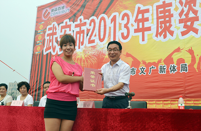 8月2日上午,邯鄲武安市武安廣場五彩斑斕、人聲鼎沸。隨著熟悉的節(jié)拍,一支支代表隊舞動著優(yōu)美的舞姿,精神飽滿,動作整齊,數(shù)千人徜徉在一片舞的海洋之中,盡情享受康姿百德健身操帶給人們的健康和快樂。 為迎接第五個“全民健身日”的到來,引導(dǎo)廣大群眾積極參加體育健身活動,武安市文廣新體局、康姿百德邯鄲分公司聯(lián)合在武安廣場舉行了康姿百德第二套健身操比賽。來自武安市各健身站點的24支代表隊共計658人參加了比賽,整個比賽精彩紛呈,高潮迭起,產(chǎn)生了良好的社會反響??底税俚鹿径麻L、總經(jīng)理李銀祥在百忙之中出席比賽并致辭。 李銀祥在致辭中首先對武安市各級領(lǐng)導(dǎo)、社會各界給予康姿百德公司的支持和康姿百德健身操的厚愛表示感謝!李銀祥說,康姿百德公司是一家研發(fā)生產(chǎn)磁性健康寢具的高科技企業(yè),公司在高度重視產(chǎn)品質(zhì)量的同時,積極倡導(dǎo)“健康睡眠、適量運動、合理營養(yǎng)”三管齊下的“立體健康”理念,研究創(chuàng)編了康姿百德健身操,并通過不斷地完善改進,于今年3月份推出了康姿百德第二套健身操,受到了全國各地廣大健身愛好者的喜愛。目前,康姿百德健身操在全國已有4000多個健身場所、參與人數(shù)300多萬,并被許多機關(guān)單位和中小學(xué)、幼兒園作為工(課)間操,這既是對我們的激勵,也是對我們的鞭策。我們將繼續(xù)把康姿百德的各項工作做得更扎實、更出色。