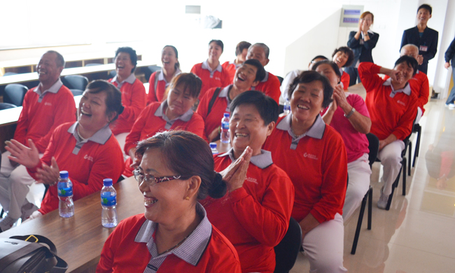 9月24日,濱州市康姿百德健康大使及健身操愛好者一行85人,興致勃勃地參觀了磁性寢具自動化生產線、磁科技展廳和“全民健身 快樂同行”公益活動照片墻。在幸福家園休息時,他們難掩此行的激動心情,在輕松、愉快的互動中,大家紛紛展示了自己的才華,幸福家園里充滿了歌聲、笑聲和歡呼聲。激昂的歌聲飛出幸福家園,在遼闊的天空回蕩。