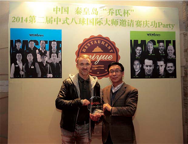 經(jīng)過四天的激烈角逐,我公司贊助的第二屆中式八球國際大師邀請賽于1月5日晚在秦皇島奧體中心落下帷幕,英格蘭選手加雷斯·波茨以其高超的球技和良好的素質(zhì),將本屆冠軍獎杯和30萬元獎金收入囊中。 總決賽結(jié)束,我公司董事長、總經(jīng)理李銀祥出席了選手們的慶功宴會,對選手們精湛的球技和出色的表現(xiàn)表示欣賞和贊許。宴會期間,李銀祥還向“臺球皇帝”亨德利贈送了康姿百德玉磁紀(jì)念枕,并手捧精心制作的印有康姿百德LOGO的工藝品與亨德利合影留念。