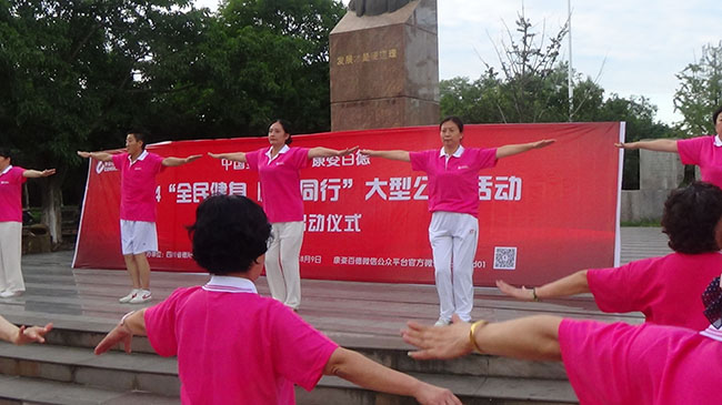 2014年8月9日,第六個(gè)“全民健身日”剛過,在各地群眾正以前所未有的熱情掀起新一輪全民健身熱潮的時(shí)候,四川德陽康姿百德戶外健身營組織當(dāng)?shù)亟∩韾酆谜撸谥榻瓨蜞囆∑綇V場(chǎng)舉行了2014“全民健身 快樂同行”大型公益活動(dòng)德陽地區(qū)啟動(dòng)儀式,號(hào)召廣大市民積極參加體育鍛煉,養(yǎng)成良好的生活習(xí)慣,真正形成全民健身、天天健身的濃厚氛圍。