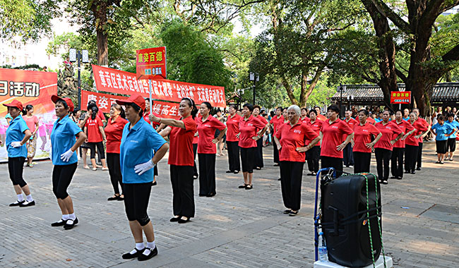 2014年 8月3日,為迎接第5個“全民健身日”的到來和第14屆江西省省運會在贛州市舉行,贛州市章貢區(qū)體育局聯(lián)合贛州康姿百德戶外健身營共同舉辦了“迎省運全民健身日”活動。 由贛州康姿百德戶外健身營160多名成員組成的七個健身操表演方隊和一個康姿百德女子舞蹈隊,在健身操、舞蹈、武術(shù)、太極拳等展演中最為引人注目,對宣傳立體健康、助推全民健身、提高康姿百德的社會影響力起到了積極作用。 江西七臺、贛州電視臺等新聞媒體,對本次活動進(jìn)行了現(xiàn)場采訪,其活動新聞將于近期在上述各臺新聞節(jié)目中播出。