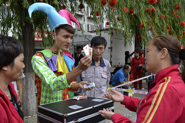 9月18日,是康姿百德公司十周年慶典參觀活動(dòng)的第二天,前來(lái)參觀科技園的各地朋友絡(luò)繹不絕、熱情不減。參觀完科技展廳和制造中心,大家爭(zhēng)相與“福、祿、壽、財(cái)”卡通精靈和十周年慶典大型絹花景觀合影,期待把最燦爛的笑容留在康姿百德。由公司員工表演的精彩紛呈的魔術(shù),看得大家瞠目結(jié)舌、翹指贊賞,一些熱心的朋友還拉起魔術(shù)師的手要求講出其中的奧秘。在“神秘雕像”前,表演者一動(dòng)不動(dòng)的神奇“騰空術(shù)”引得許多朋友駐足圍觀,大家?guī)缀跬浟颂鞖獾难谉幔粫?huì)扮扮鬼臉,一會(huì)講講笑話(huà),直至逗玩得“雕像”露出笑容,大家也跟著哈哈大笑起來(lái),歡樂(lè)的笑聲給康姿百德科技園增添了不少喜慶祥和。