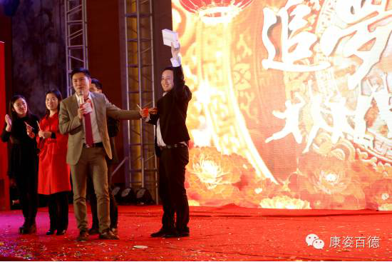 △“康姿百德2016我最喜歡的年會(huì)節(jié)目”一等獎(jiǎng)獲得者上臺(tái)領(lǐng)獎(jiǎng)