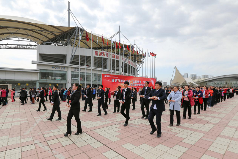 2016年4月2日,康姿百德“全民健身·快樂(lè)同行”大型公益活動(dòng)暨康姿百德第五套健身操推廣啟動(dòng)儀式在秦皇島市奧體中心正式啟動(dòng)。來(lái)自全國(guó)近千名康姿百德各級(jí)經(jīng)銷商代表和優(yōu)秀員工代表參加了啟動(dòng)儀式。