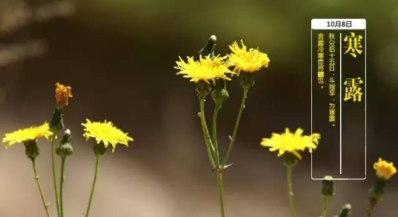 從字面上看,寒露的“寒”就是寒冷,“露”則表示了近地面水汽凝結(jié)成露水的現(xiàn)象。但從氣象角度來看,寒露節(jié)氣和白露、霜降這兩個節(jié)氣一樣,所表示的熱量變化意義比它的水分變化意義更為明顯。應該說,寒露更多地體現(xiàn)了一種氣溫轉(zhuǎn)變,季節(jié)轉(zhuǎn)換的過程。