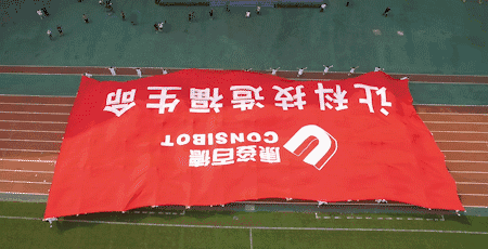 活動(dòng)伊始,伴隨著慷慨激昂的《走向復(fù)興》音樂(lè),一幅608平方米的巨型“讓科技造福生命”紅旗步入賽場(chǎng)??底税俚鹿ぷ魅藛T高舉旗幟,整齊自如地緩緩前行,給人以極大的視覺(jué)沖擊。