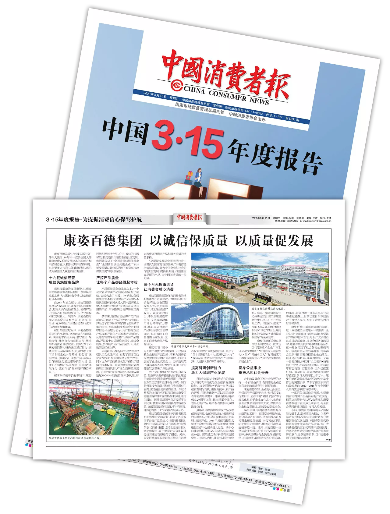 “3·15”國際消費者權(quán)益日,康姿百德以誠信經(jīng)營、積極維護消費者合法權(quán)益的良好社會形象,連續(xù)7年榮登《中國消費者報》。這充分說明,康姿百德在誠信自律、維護消費者合法權(quán)益等方面的努力和付出,得到了社會各界的高度肯定和廣泛認可。