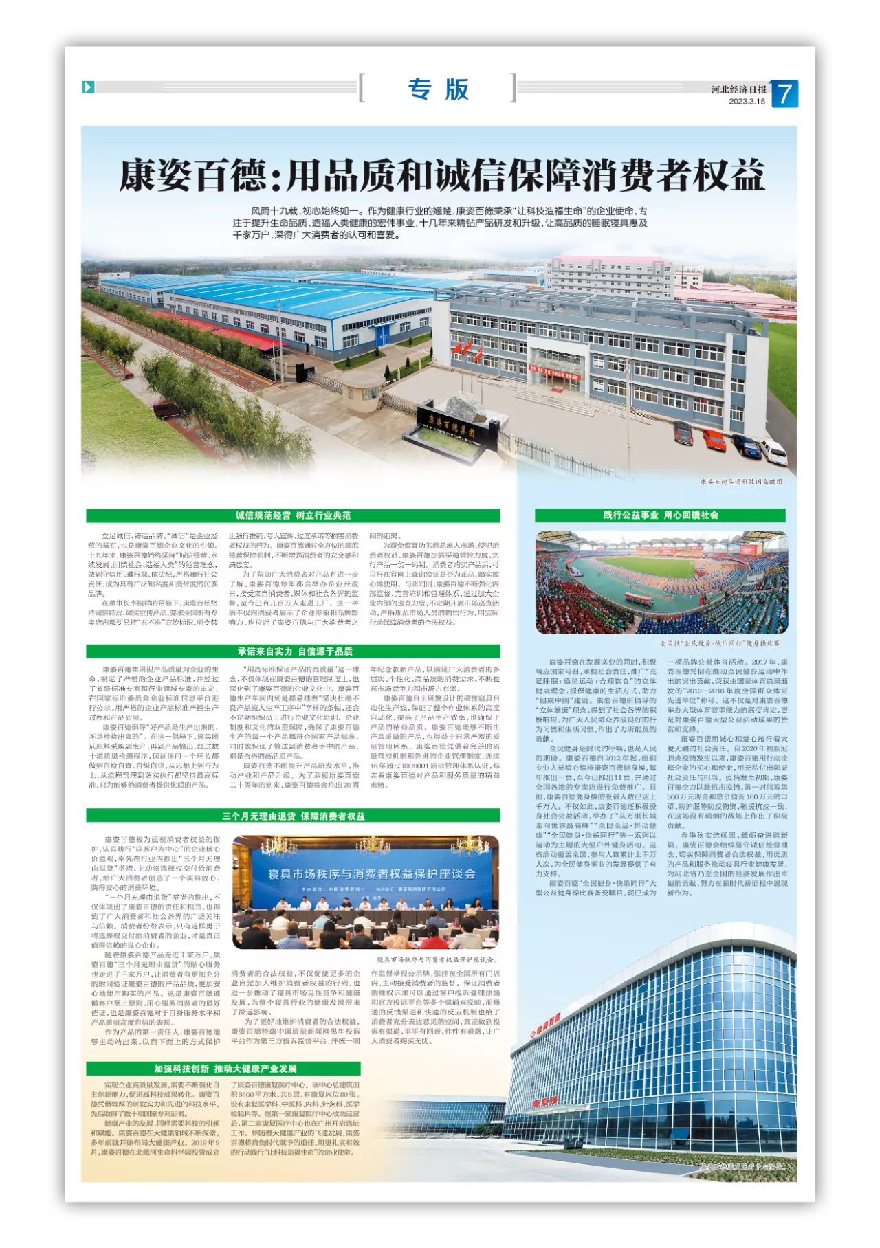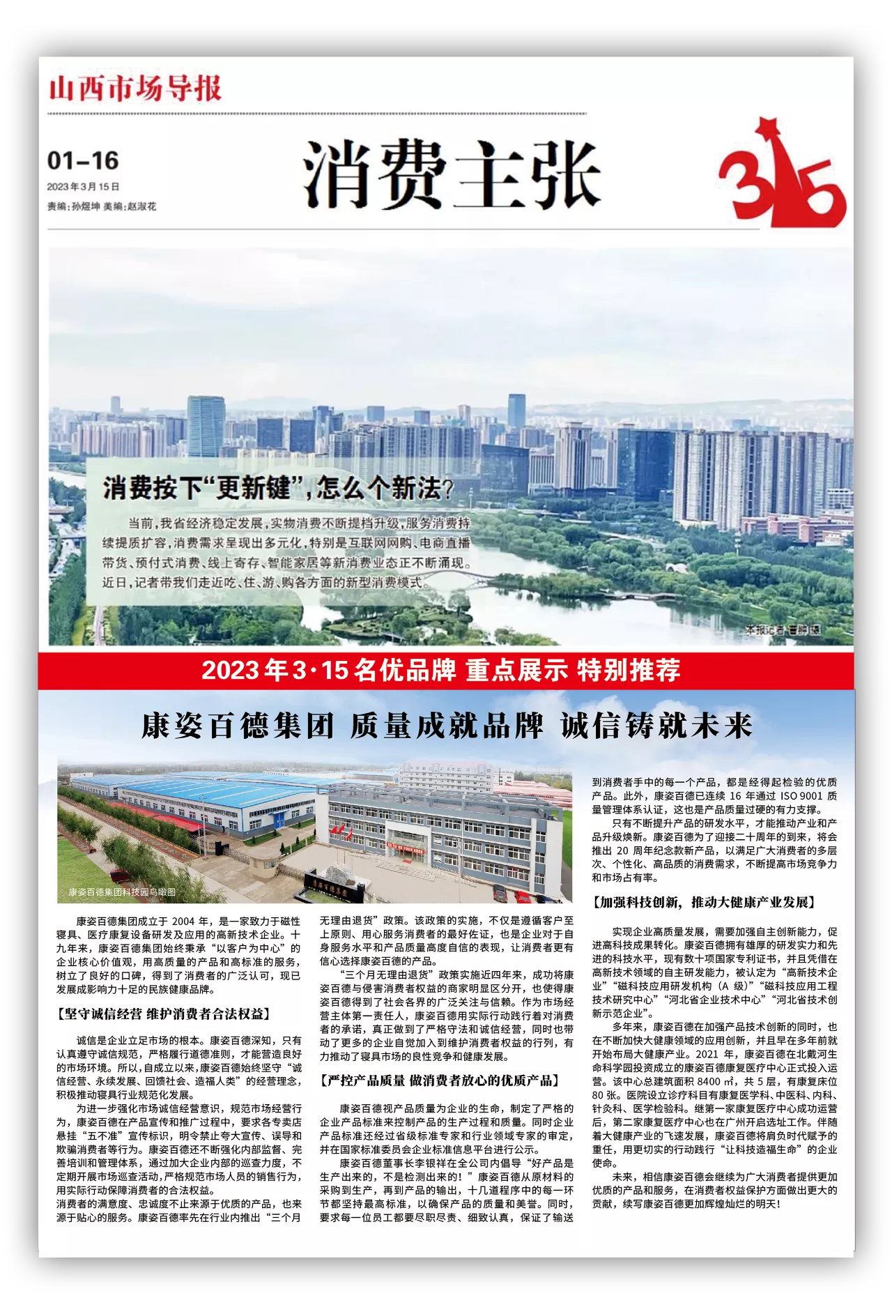 3·15消費者權(quán)益日,康姿百德又一次憑借在誠信經(jīng)營和維護消費者合法權(quán)益方面做出的突出貢獻,受到了中國消費者報、市場監(jiān)督管理雜志、河北經(jīng)濟日報、山西市場導(dǎo)報、遼寧電視臺等多家權(quán)威媒體全方位、多視角的爭相報道。