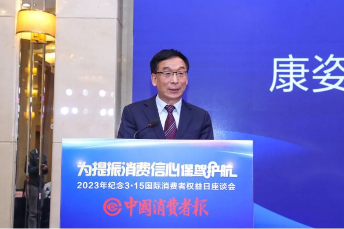 3月14日,2023年度“紀(jì)念3·15”國際消費(fèi)者權(quán)益日座談會(huì)在京召開。來自國家市場(chǎng)監(jiān)督管理總局相關(guān)司局負(fù)責(zé)人、中國消費(fèi)者協(xié)會(huì)領(lǐng)導(dǎo),以及在保護(hù)消費(fèi)者權(quán)益方面貢獻(xiàn)突出的典范企業(yè)等,共同參加本次座談會(huì)??底税俚录瘓F(tuán)董事長李銀祥作為保障消費(fèi)者權(quán)益的優(yōu)秀企業(yè)代表,受邀出席并作主旨演講。
