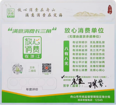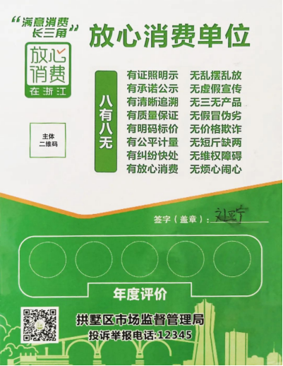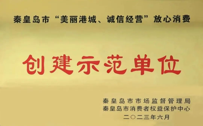 榮獲“放心消費(fèi)單位”榮譽(yù)稱號(hào)
