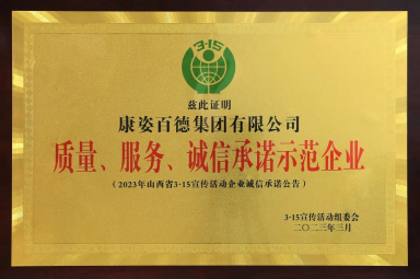康姿百德被山西315宣傳活動(dòng)組委會(huì)授予