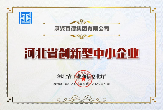 康姿百德被評(píng)為“河北省創(chuàng)新型中小企業(yè)”