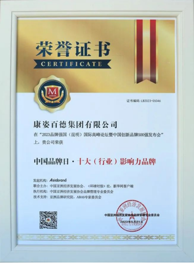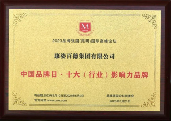 康姿百德集團(tuán)榮獲“十大(行業(yè))影響力品牌”稱號(hào)