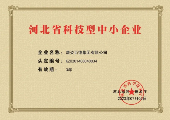 康姿百德連續(xù)13年被評(píng)為“河北省科技型中小企業(yè)”