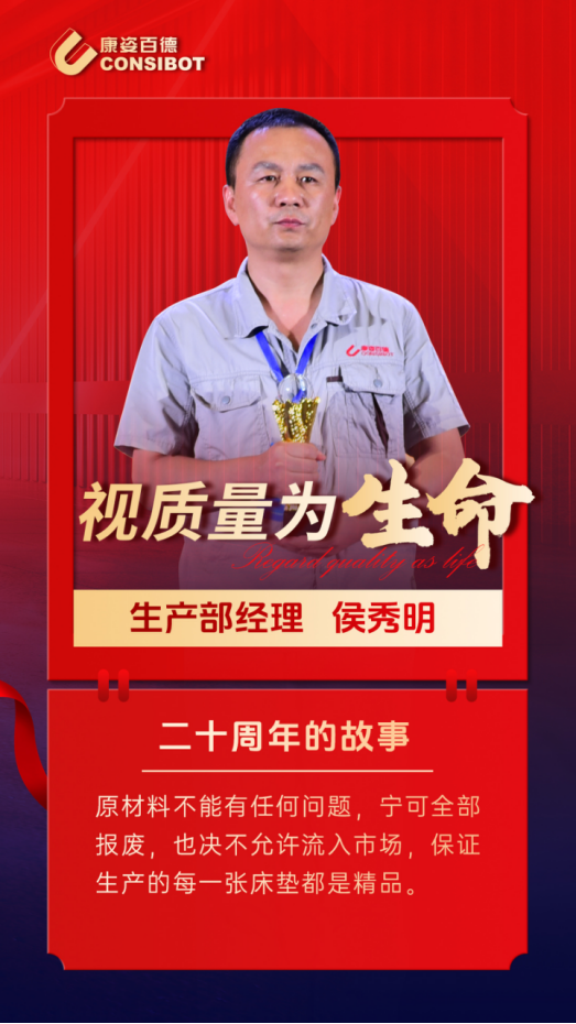 康姿百德之所以能夠為消費者提供高質量的產品,就是因為有一群像侯秀明這樣的優(yōu)秀員工,認真做好產品的每一道工序,對產品質量層層把關。也正是因為有一群時刻秉承“以客戶為中心”核心價值觀的員工,康姿百德才會獲得消費者的認可,才會不斷取得成功!