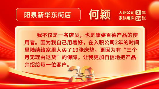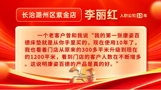 康姿百德20周年專賣店員工的系列故事會持續(xù)推出,讓我們一起期待其他地區(qū)專賣店員工代表的精彩故事吧!