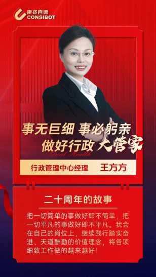 今年是康姿百德集團(tuán)成立20周年。在20年的發(fā)展歷程中,涌現(xiàn)出一大批在經(jīng)營(yíng)管理、原料采購(gòu)、品牌宣傳、暖心服務(wù)、人才引進(jìn)和培訓(xùn)等各個(gè)領(lǐng)域立足崗位、奉獻(xiàn)建功的優(yōu)秀代表。讓我們一起看看這些榜樣故事。本期帶你走進(jìn)康姿百德行政管理中心經(jīng)理王方方。