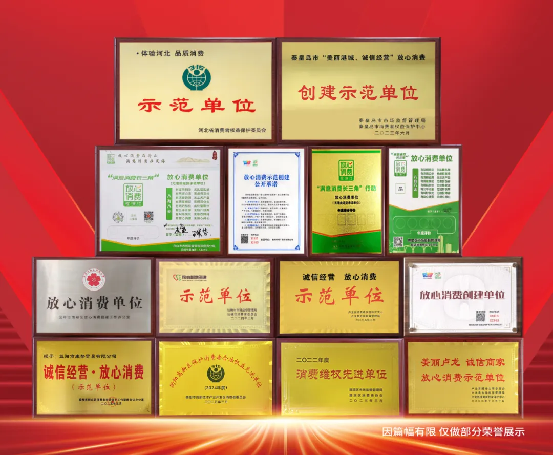 康姿百德憑借卓越的產品質量、優(yōu)質的售后服務和良好的品牌口碑,被河北省消費者保護委員會評定為“‘體驗河北·品質消費’示范單位”,獲得了湖北仙桃、浙江杭州、浙江舟山、陜西漢中、湖南衡陽、湖南益陽等多地市場監(jiān)管部門頒發(fā)的放心消費示范單位相關榮譽證書。