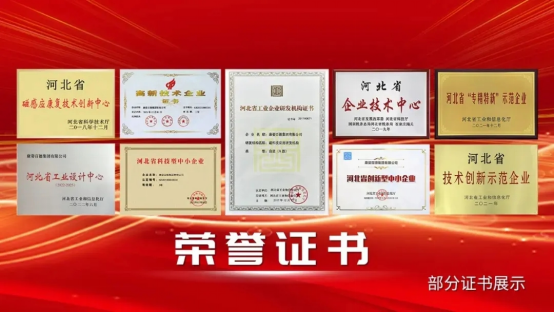 康姿百德的科研實力,獲得了社會各界的一致認可,先后榮獲“高新技術(shù)企業(yè)”“河北省磁感應(yīng)康復技術(shù)創(chuàng)新中心”“河北省技術(shù)創(chuàng)新示范企業(yè)”“河北省‘專精特新’示范企業(yè)”“河北省企業(yè)技術(shù)中心”“磁科技應(yīng)用研發(fā)機構(gòu)(A級)”“河北省科技型中小企業(yè)”“磁科技應(yīng)用工程技術(shù)研究中心”等多項資質(zhì)和榮譽。