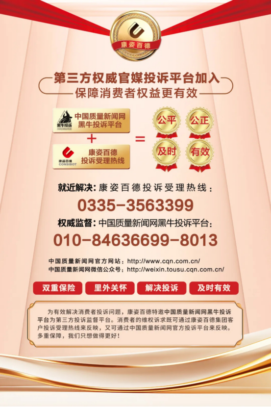 不僅如此,康姿百德還主動(dòng)加入中國消費(fèi)者協(xié)會“智慧315”消費(fèi)維權(quán)投訴平臺,特邀“中國質(zhì)量新聞網(wǎng)黑牛投訴平臺”作為第三方投訴監(jiān)督平臺,多重渠道并行,全方位保障消費(fèi)者的合法權(quán)益。