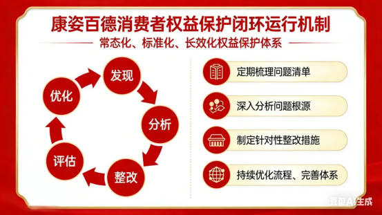 為確保消費(fèi)者權(quán)益保護(hù)工作常態(tài)化、標(biāo)準(zhǔn)化、長效化,康姿百德構(gòu)建了“發(fā)現(xiàn)—分析—整改—評估—優(yōu)化”的完整閉環(huán)運(yùn)行機(jī)制,將權(quán)益保護(hù)融入企業(yè)發(fā)展的每一個(gè)細(xì)節(jié)。
