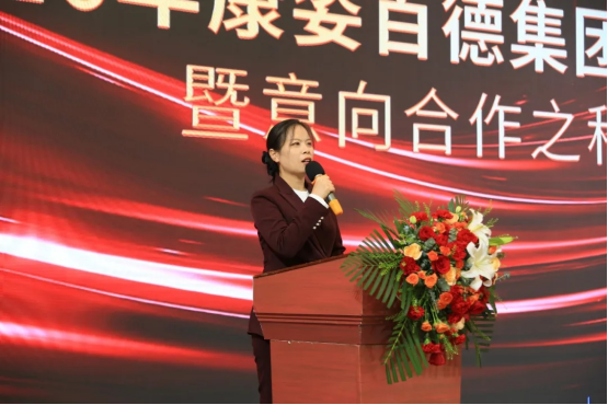 康姿百德集團銷售公司總監(jiān)董雪瑩也在會議上發(fā)表了熱情洋溢的講話??偙O(jiān)董雪瑩表示,康姿百德二十余年來始終將“誠信經(jīng)營”作為立身之本,憑借優(yōu)質(zhì)的產(chǎn)品與真誠的服務(wù),贏得了廣大消費者的信賴。多年來,康姿百德立足品牌優(yōu)勢,從產(chǎn)品創(chuàng)新、服務(wù)支持、市場運營等多維度為合作伙伴賦能,讓合作伙伴獲得實實在在的發(fā)展助力。本次招商會,是與新老合作伙伴深化信任、共謀發(fā)展的新起點,希望更多合作伙伴選擇康姿百德,共享品牌發(fā)展成果。
