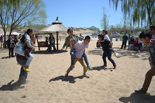 2015年5月4日,康姿百德公司組織全體員工在南戴河金沙灣沙雕大世界共度五四青年節(jié)。3日晚,大家共同為五月份過生日的小伙伴送上了祝福。董事長李銀祥更親手為壽星們切蛋糕,祝賀他們生日快樂。這一支平均年齡26.5歲的年輕團隊,走到哪里激情和活力便在哪里,這一天的沙雕大世界,是我們的世界!篝火、烤肉,年輕的小伙伴自己動手,品嘗成功的美妙滋味;滑沙、滑草,活力的小伙姑娘爭前恐后,感受速度的無限激情;射箭、高爾夫,青聰?shù)哪贻p人躍躍欲試,找尋成長的魅力蹤影。